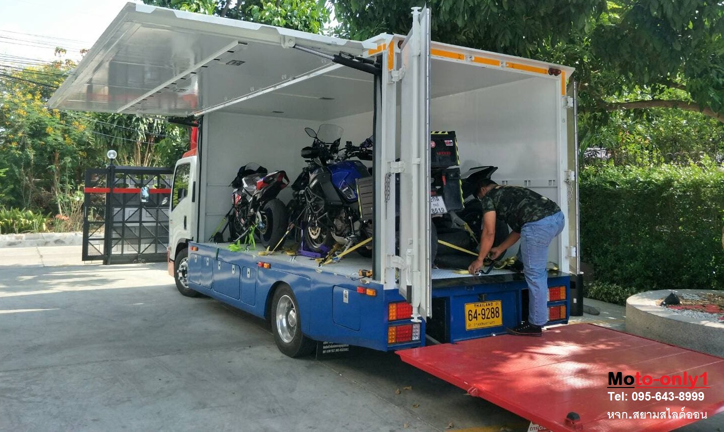 สำหรับขนบิ๊กไบค์โดยเฉพาะ ทันสมัย ปลอดภัย ได้มาตรฐาน ภายในสะอาดกว้างขวาง ตู้ทึบยังสามารถป้องกันรถท่านจากฝุ่น เม็ดหิน ดิน ทราย ได้อย่างดี หมดห่วงเรื่องรถจะเป็นรอยขณะขนย้าย